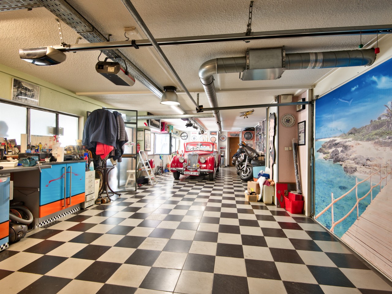 Ce bien immobilier bénéficie d'une entrée garage pour un stationnement de 2 à 3 véhicules dans le local, un bureau, une salle de douches, un WC et offre de nombreuses possibilités d'aménagement.