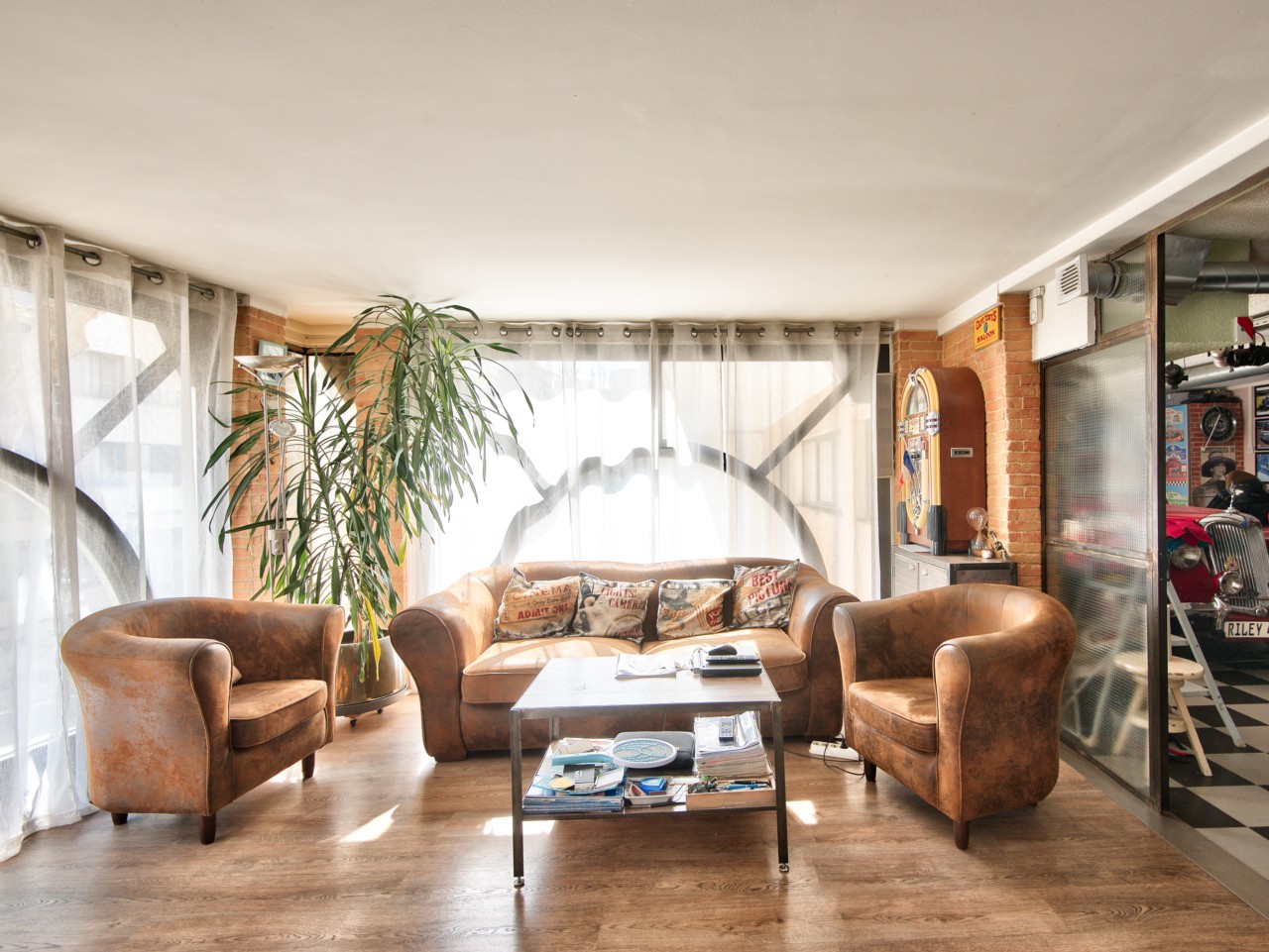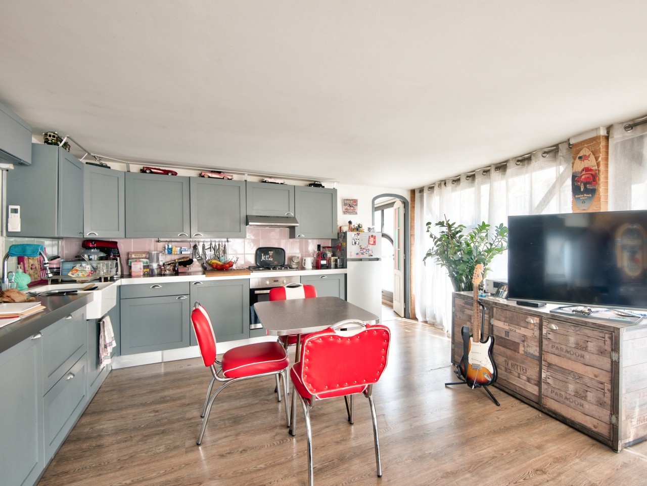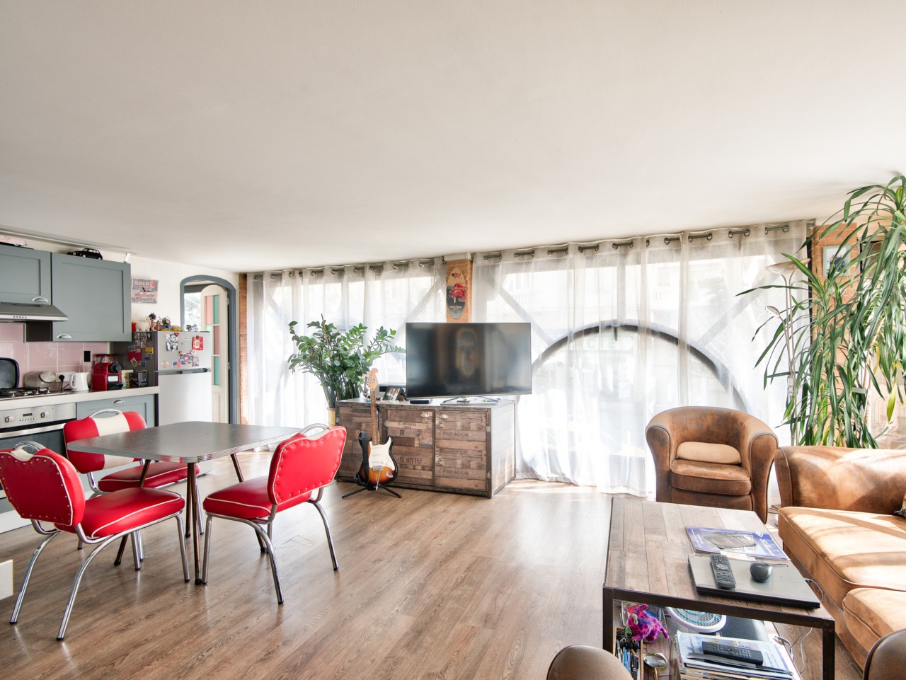 La partie habitation se compose d'un séjour avec une cuisine américaine, 2 chambres, 2 salle de douches et un WC.